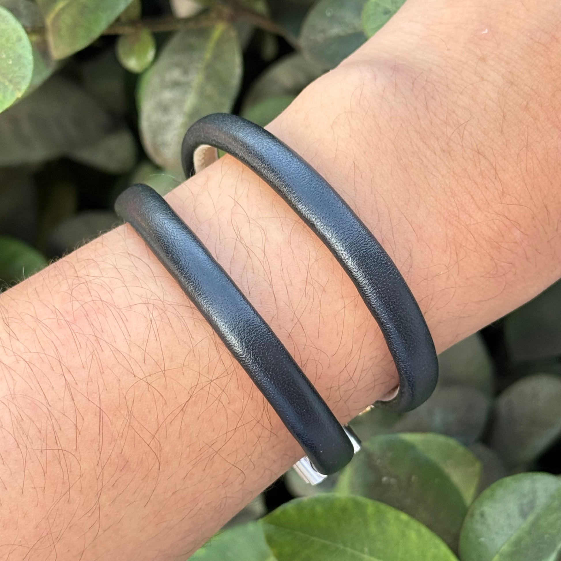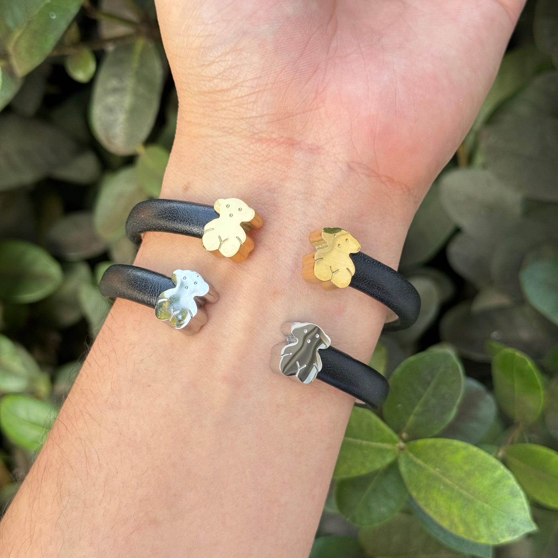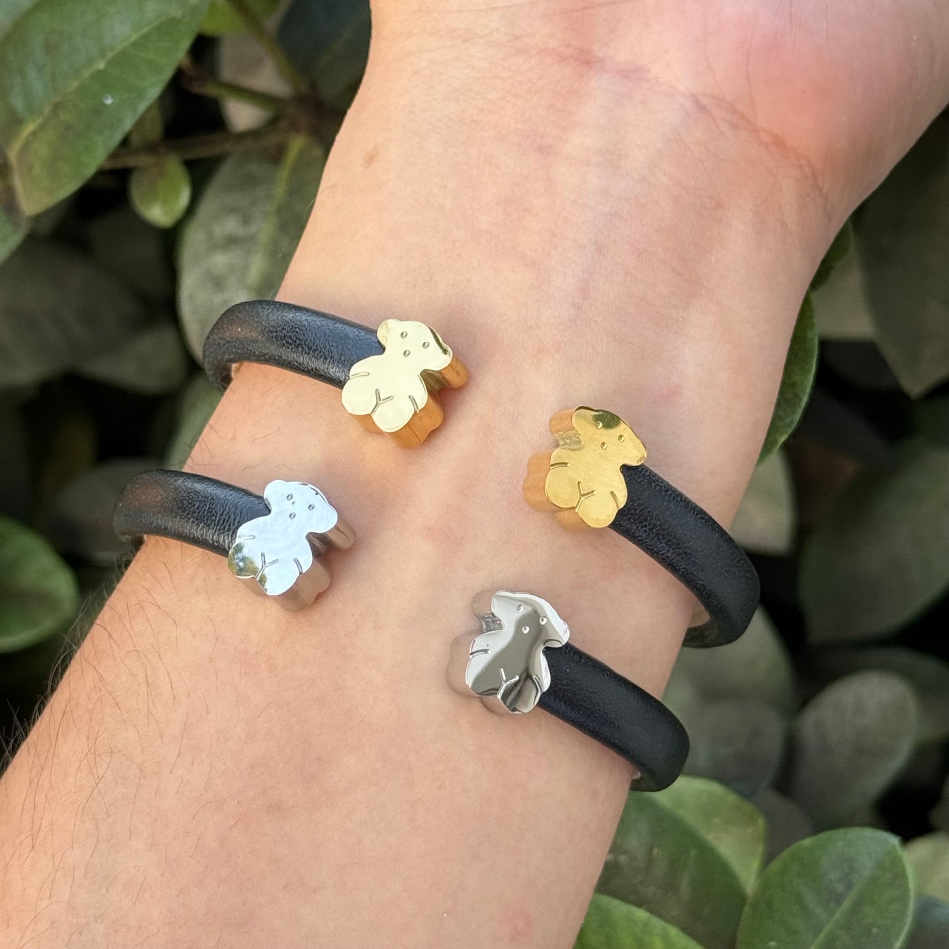 - Material: acero inoxidable, tipo cuero