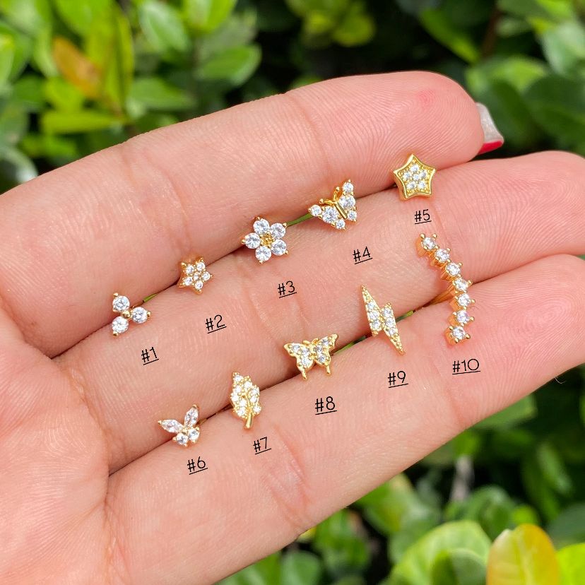 - Material: Chapa de oro con poste de acero quirúrgico.